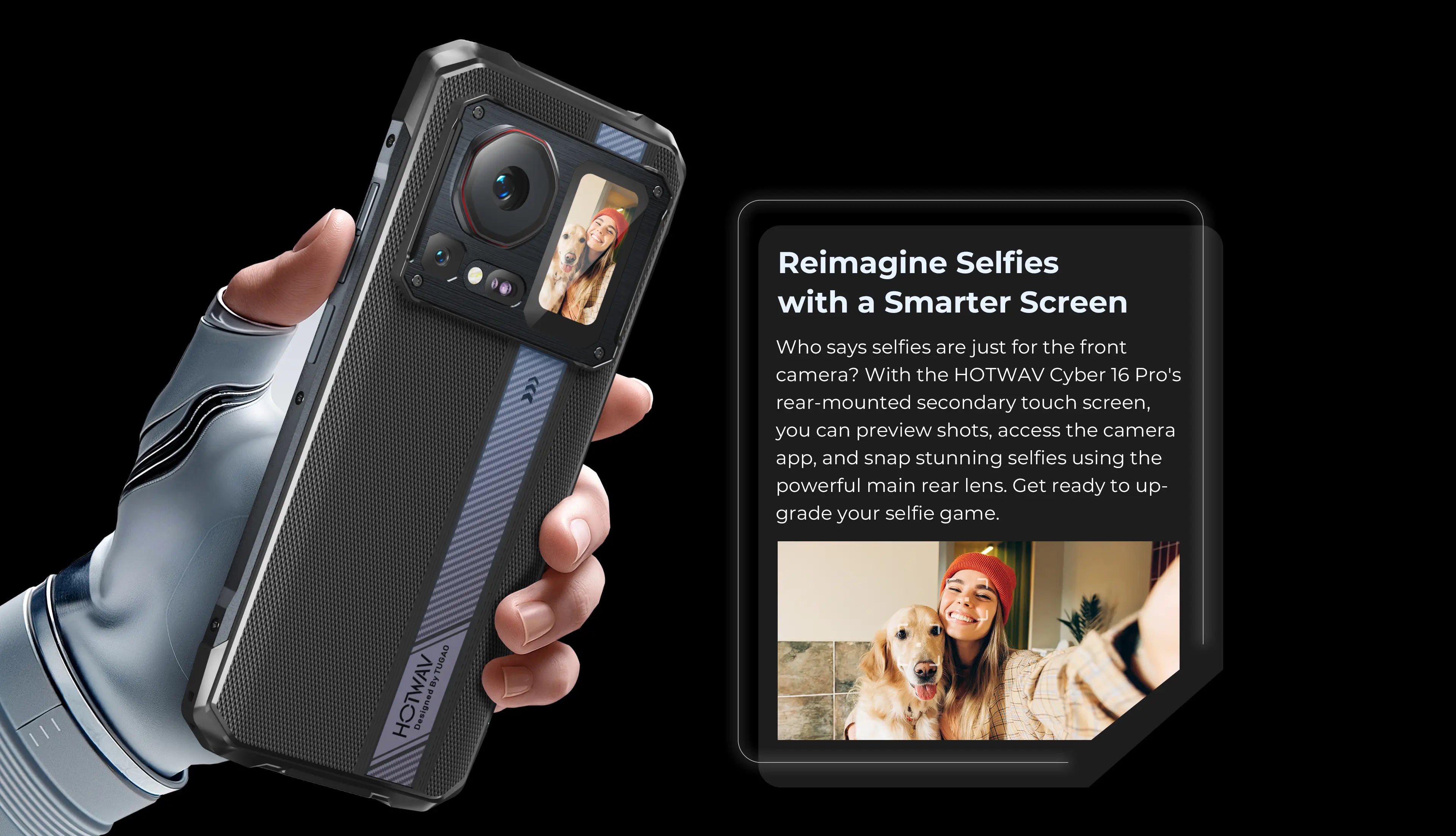 Who says selfies are just for the front camera? With the HOTWAV Cyber 16 Pro's rear-mounted second-ary touch screen, you can preview shots, access the camera app, and snap stunning selfies using the powerful main rear lens. Get ready to upgrade your selfie game.