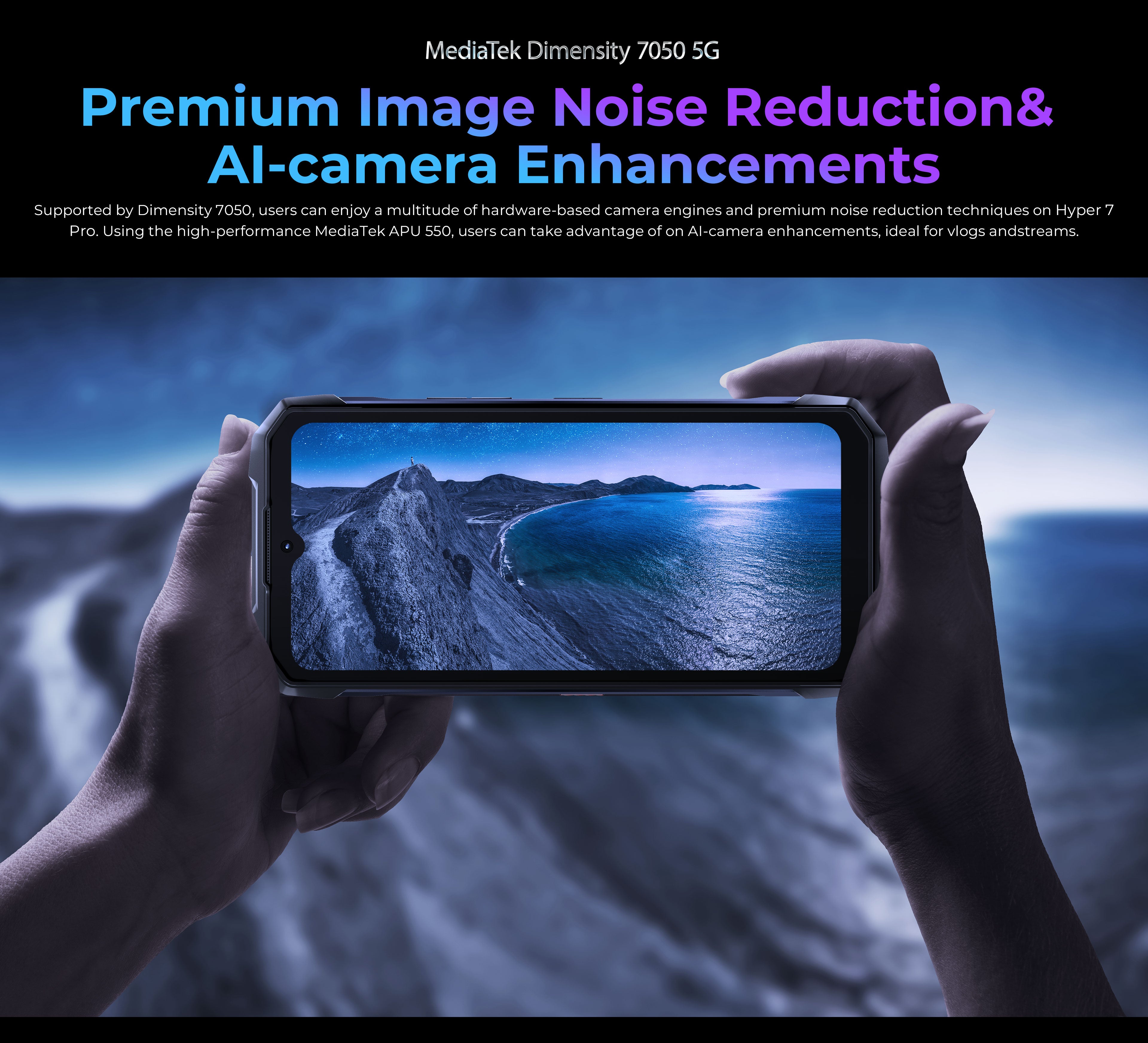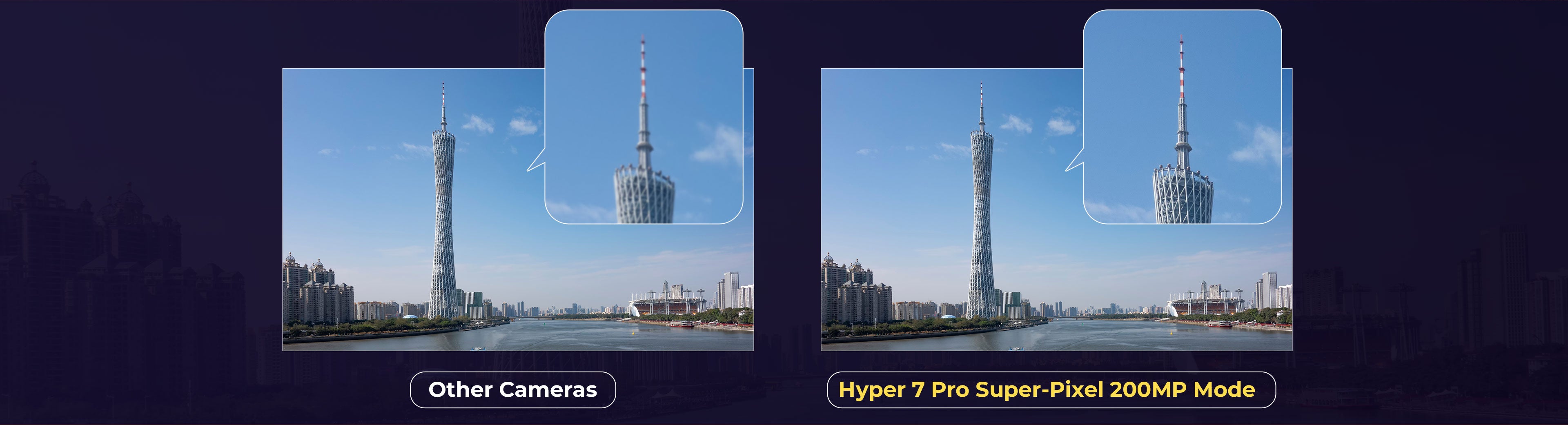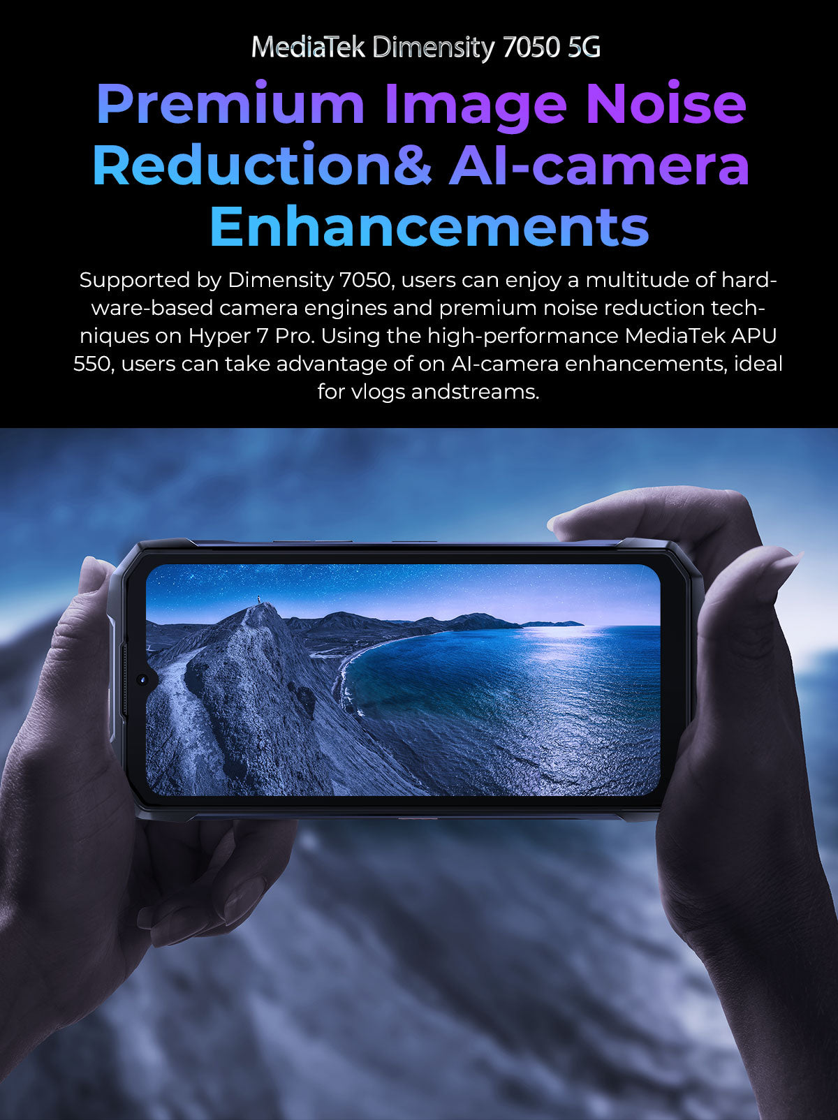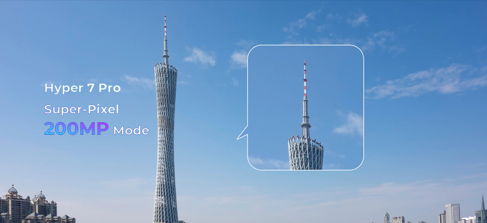 Driven by the MediaTek Dimensity 7050 chipset and enhanced by Pixsmart Al-Boost technology, the Hyper 7 Pro maximizes the potential ofits 200Mp Samsung ISOCELL HP3 lens. Enjoy the incredible detail of 200 milion pixels and ultra-high resolution with the Hyper 7 Pro lt's perfect for nighttime photography and boasts advanced autofocus for sharp, clear images.