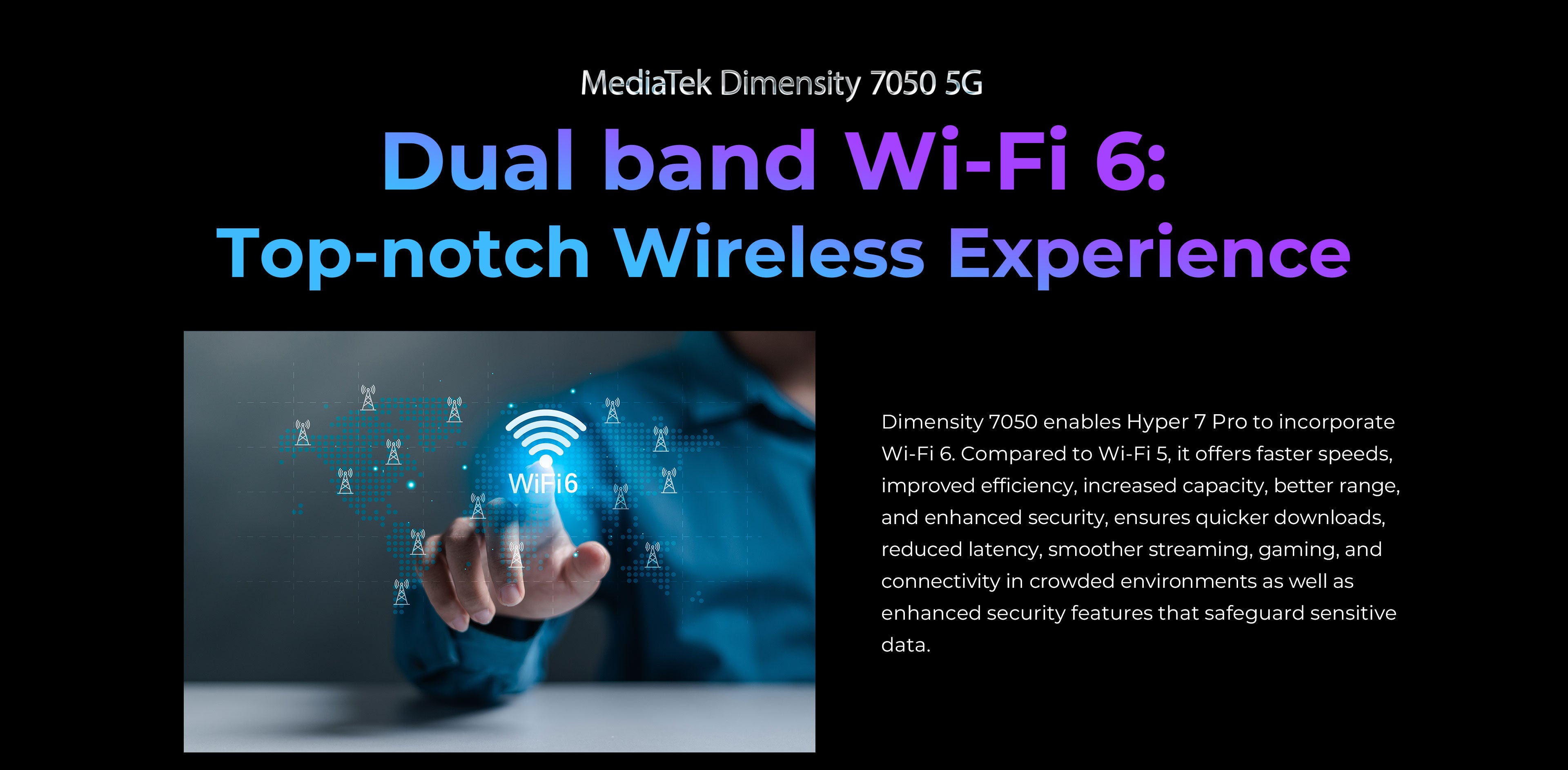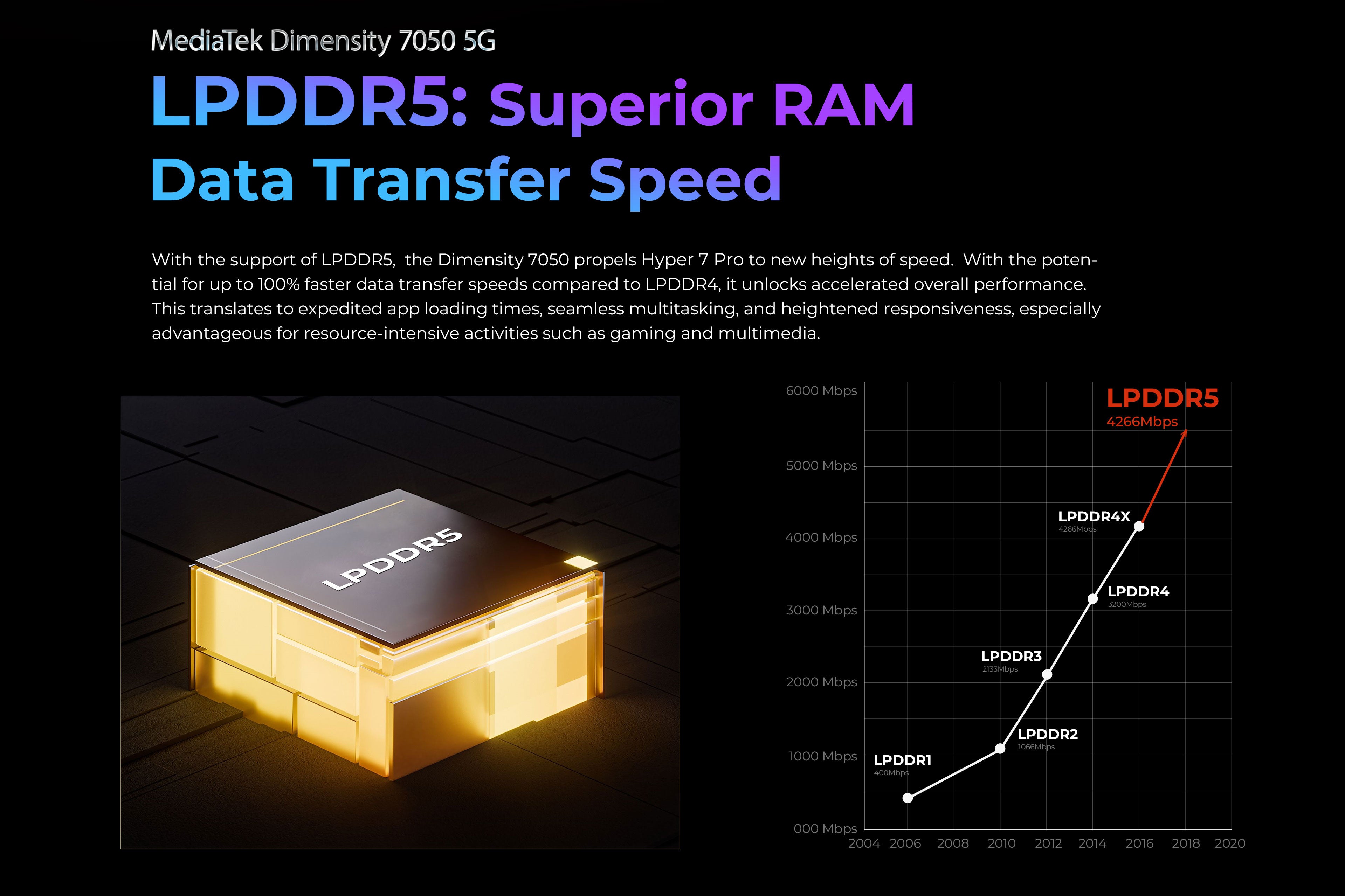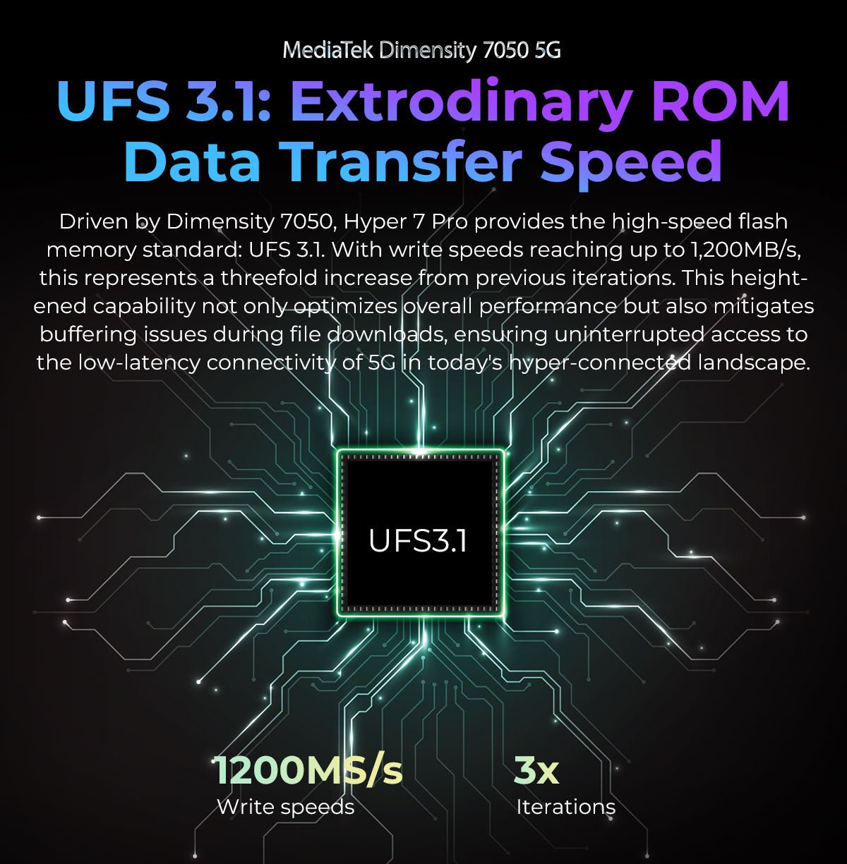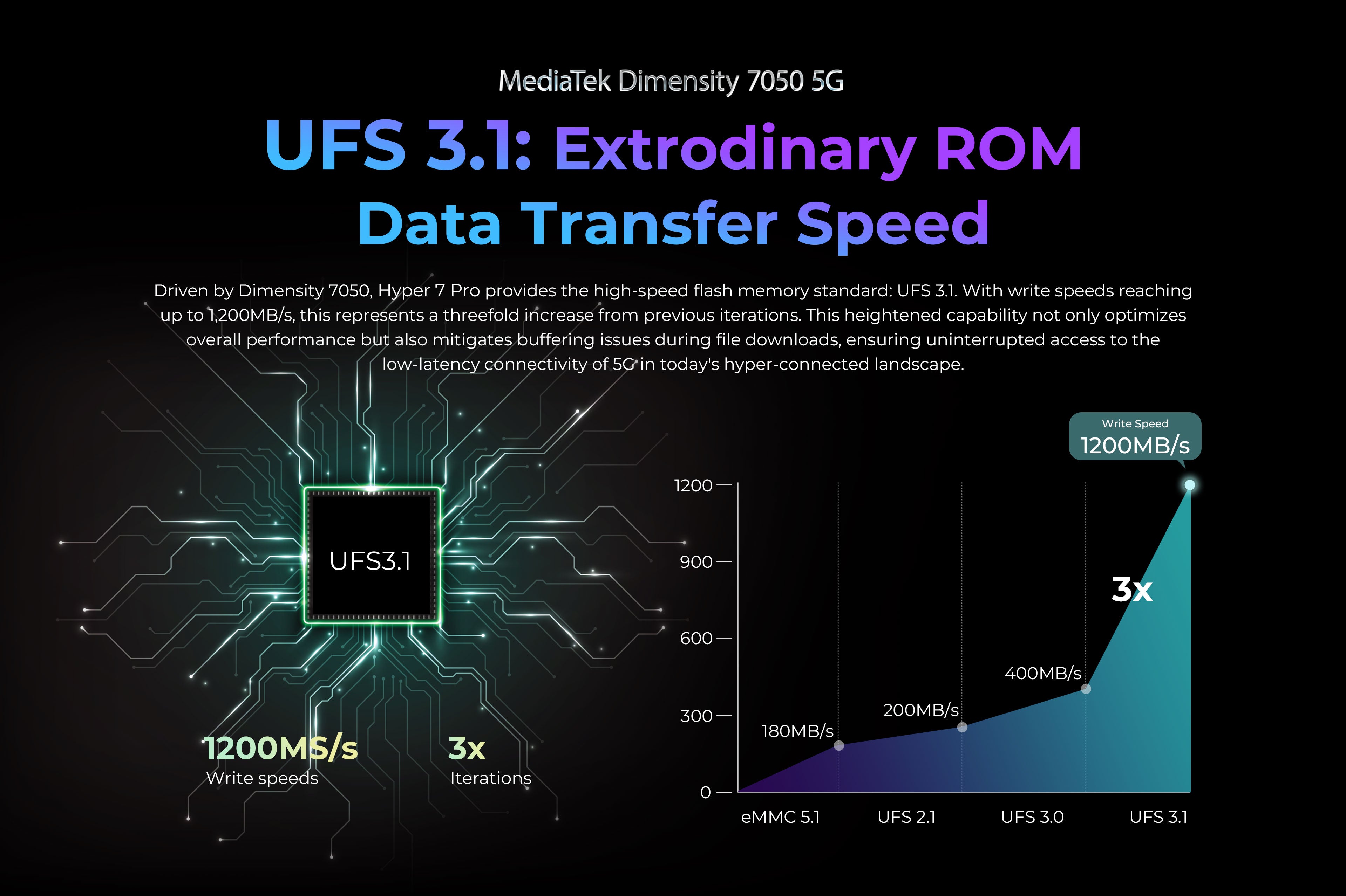 Driven by the MediaTek Dimensity 7050 chipset and enhanced by Pixsmart Al-Boost technology, the Hyper 7 Pro maximizes the potential ofits 200Mp Samsung ISOCELL HP3 lens. Enjoy the incredible detail of 200 milion pixels and ultra-high resolution with the Hyper 7 Pro lt's perfect for nighttime photography and boasts advanced autofocus for sharp, clear images.
