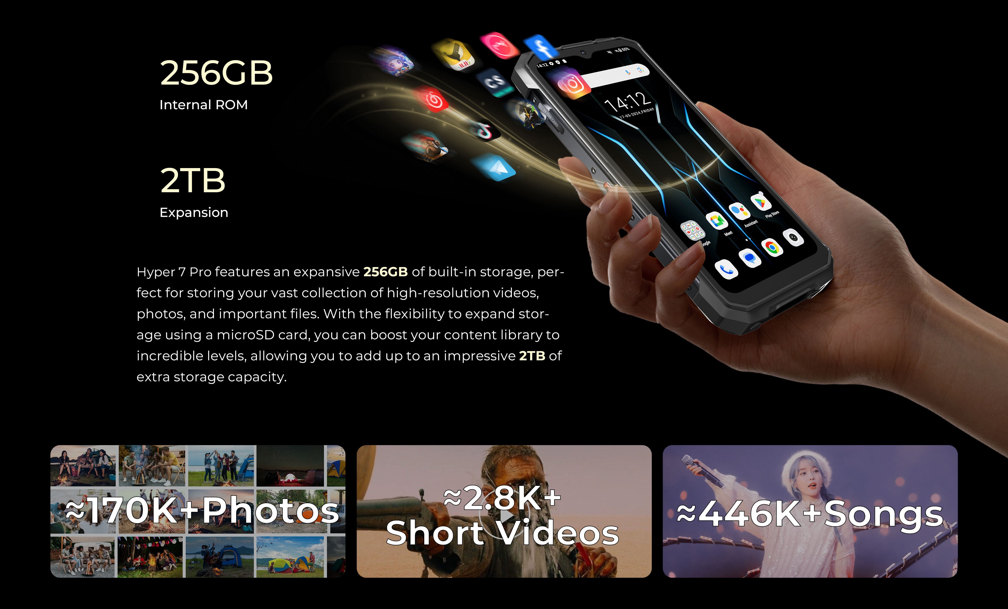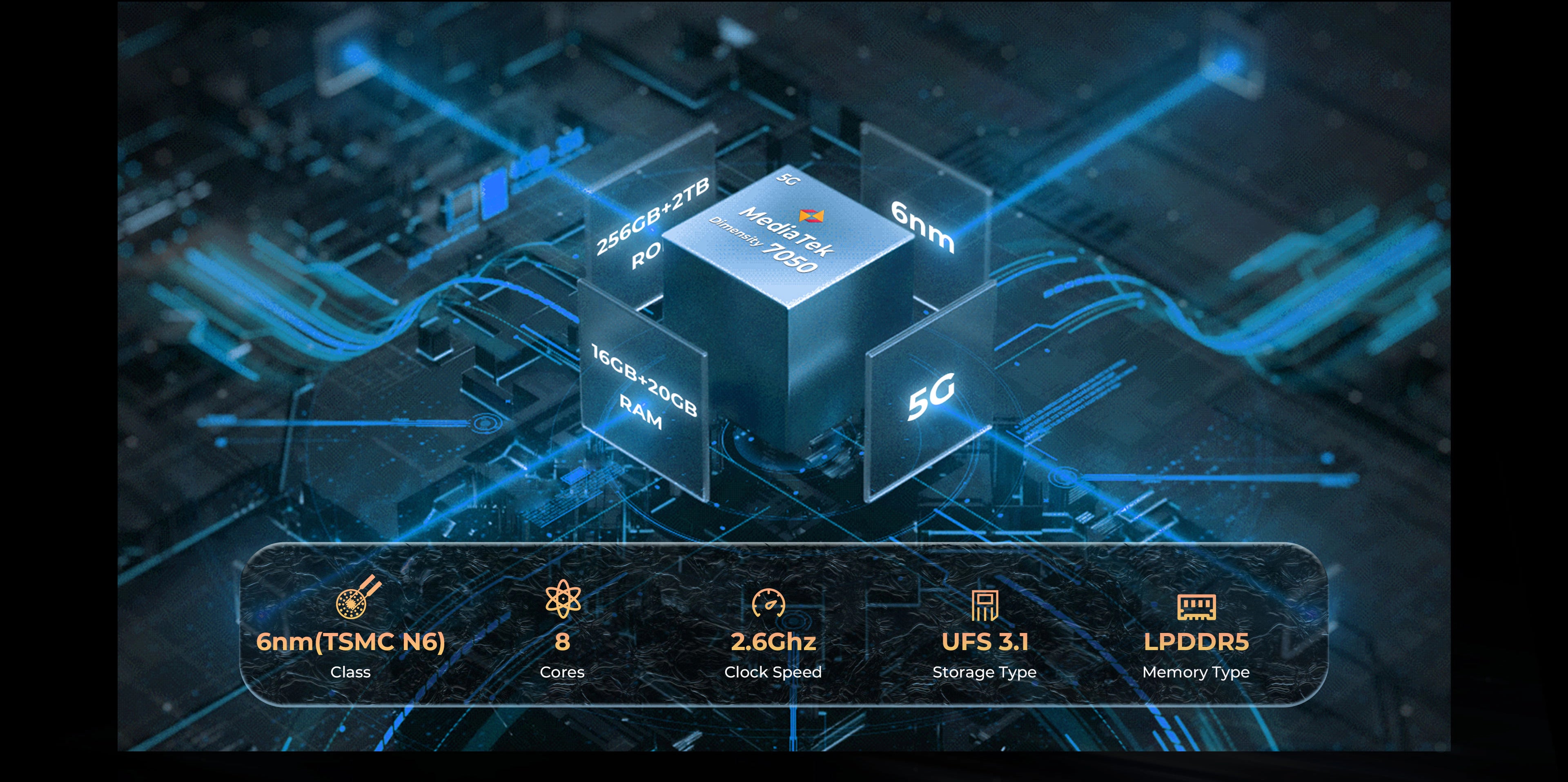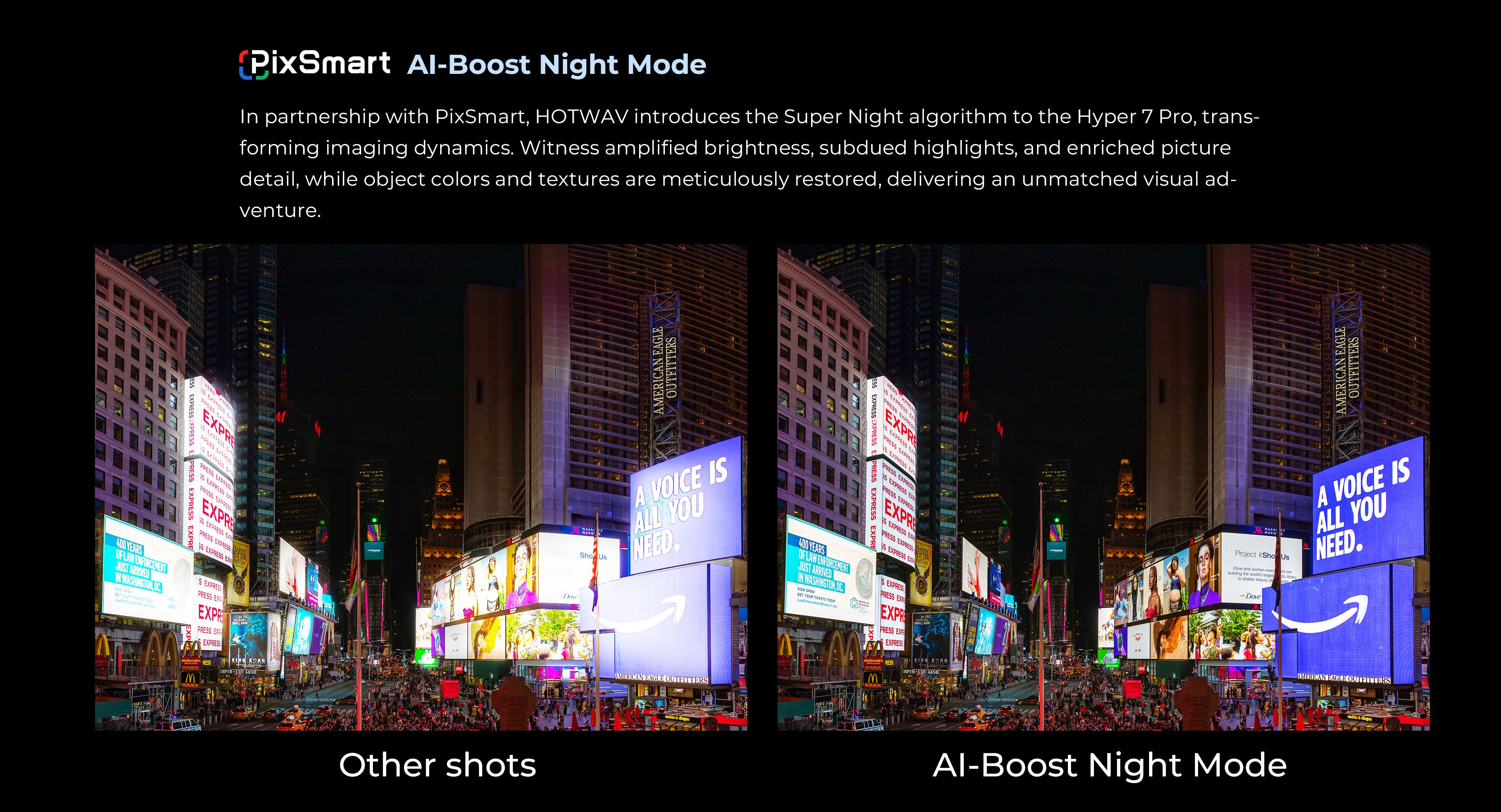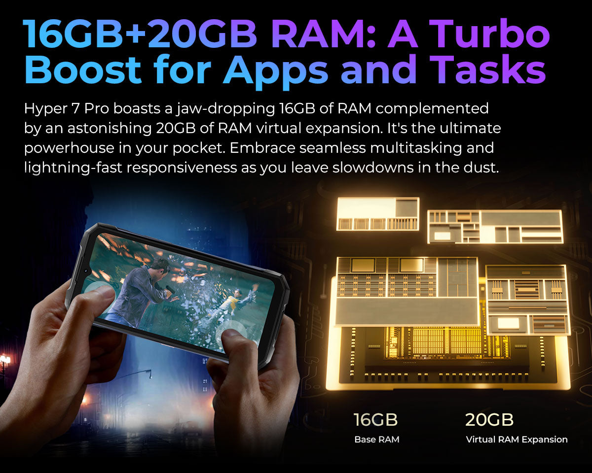 Driven by the MediaTek Dimensity 7050 chipset and enhanced by Pixsmart Al-Boost technology, the Hyper 7 Pro maximizes the potential ofits 200Mp Samsung ISOCELL HP3 lens. Enjoy the incredible detail of 200 milion pixels and ultra-high resolution with the Hyper 7 Pro lt's perfect for nighttime photography and boasts advanced autofocus for sharp, clear images.
