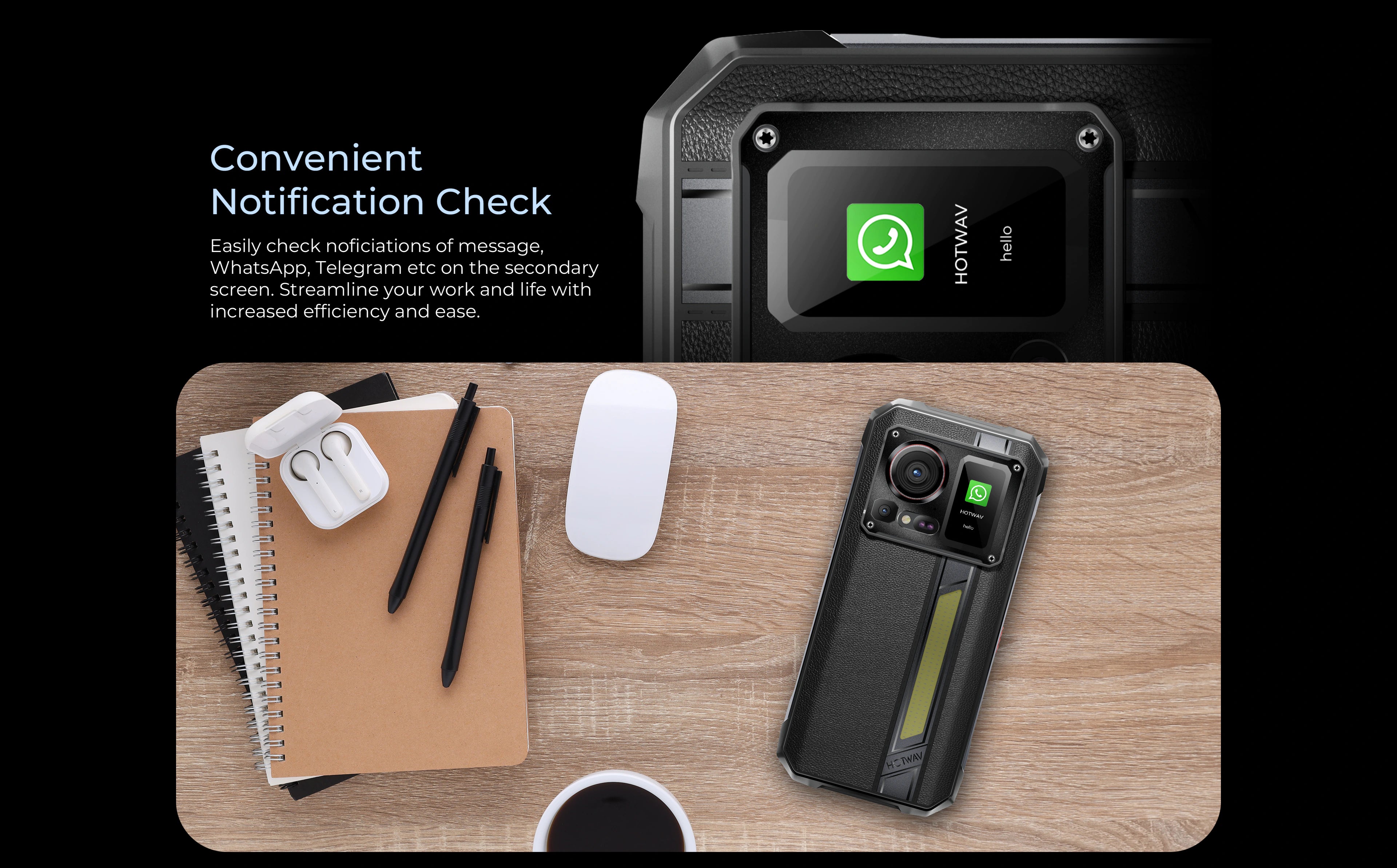 HOTWAV once again launches product with dual touch screens.This stylish secondary touch screen offers practical features such as time viewing,