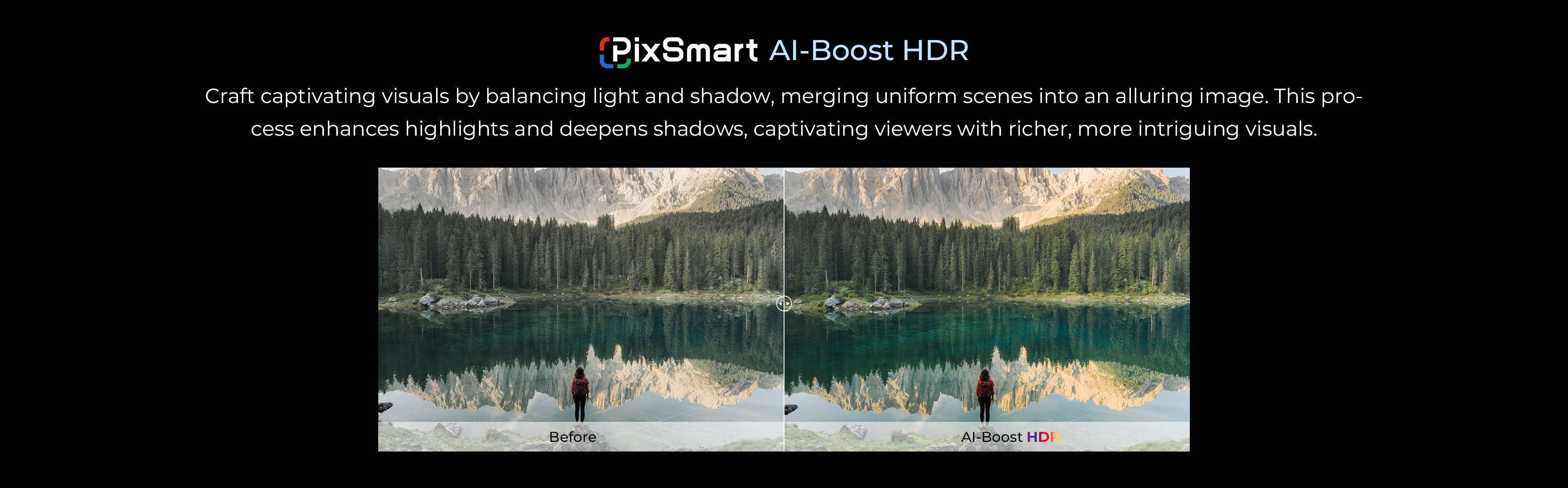 Step into a realm of unparalleled clarity with images boasting an astounding 200 milion pixels (12256*16320) courtesy of the SAMSUNG ISOCELL HP3 lens, synergized with cutting-edge Pixsmart Al-boost technology. Immerse yourself in unrivaled clarity and a wealth of sumptuous details.