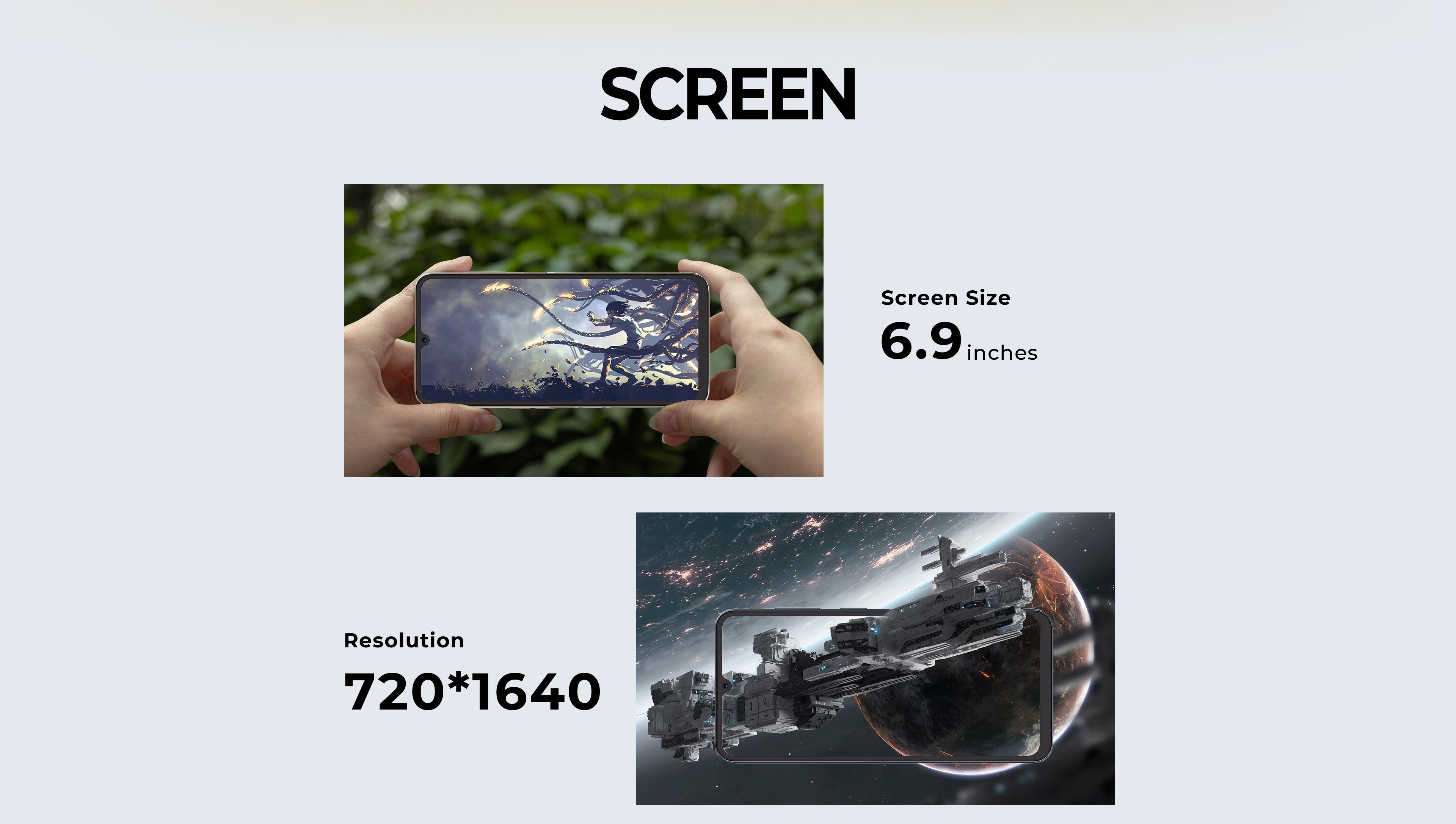 · 6.9" HD+ Display