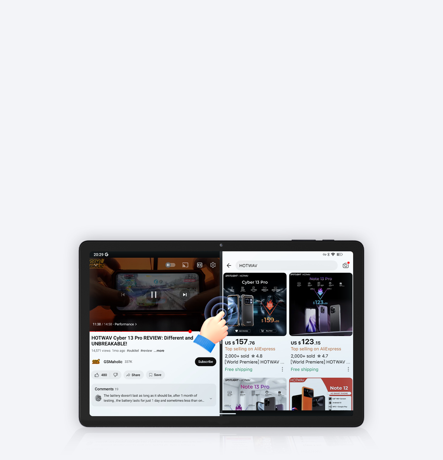 Utilize the split-screen feature on HOTWAV Pad 11 to multitask effortlessly, such as watching videos while browsing websites. Experience enhanced freedom and convenience with this versatile capability.