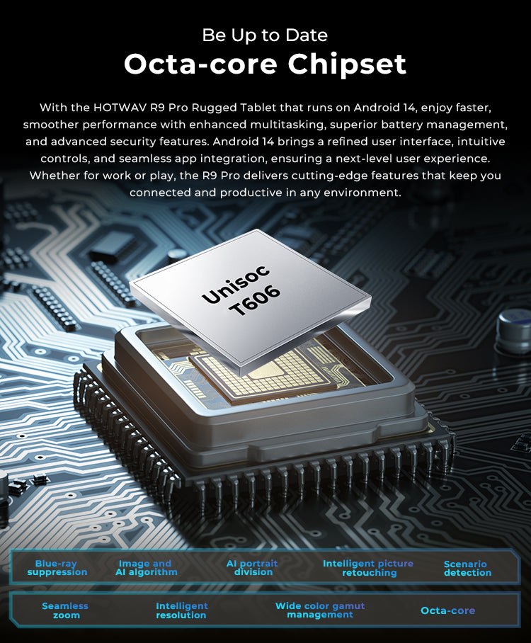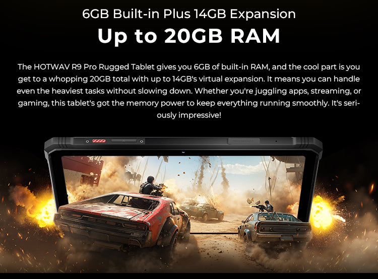 With the HOTWAV R9 Pro Rugged Tabletthat runs on Android 14, enjoy faster,smoother performance with enhancedmultitasking, superior batterymanagement,and advanced securityfeatures. Android 14 brings are fined userinterface,intuitive controls, and seamlessapp integration,ensuring a next-level userexperience,Whether for work or play, theR9 Pro delivers cutting-edge features thatkeep you connected and productive in anyenvironment.