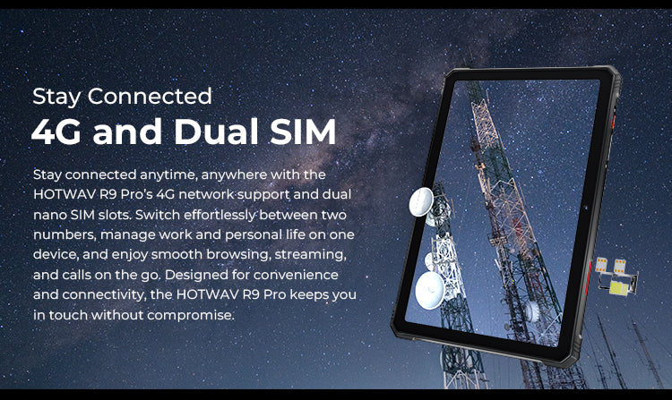 The HOTWAV R9 Pro Rugged Tablet has your back when it comesto navigation, with Beidou, Galileo, Glonass, and GPS all built-in. Nomatter where you are urban jungle or out in the wild you'll alwaysknow exactly where you're headed. lt's like having a reliable travelbuddythat helps you stay on track, wherever life takes you!